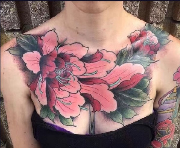 漂亮的一组男女性大花胸纹身图案作品欣赏