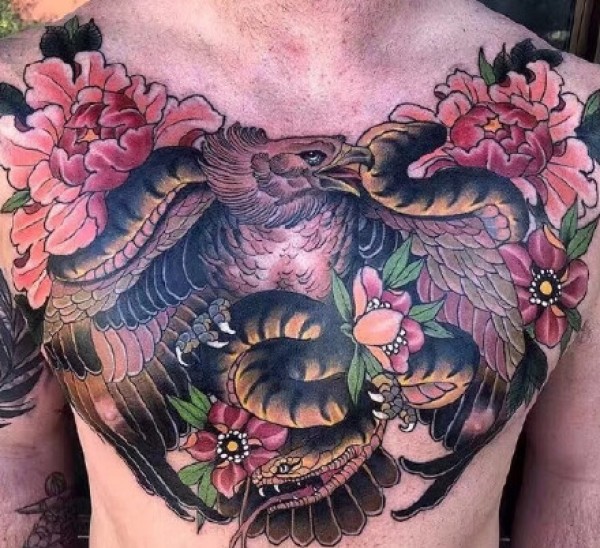 花胸纹身--一组男性霸气的大花胸纹身图案作品欣赏