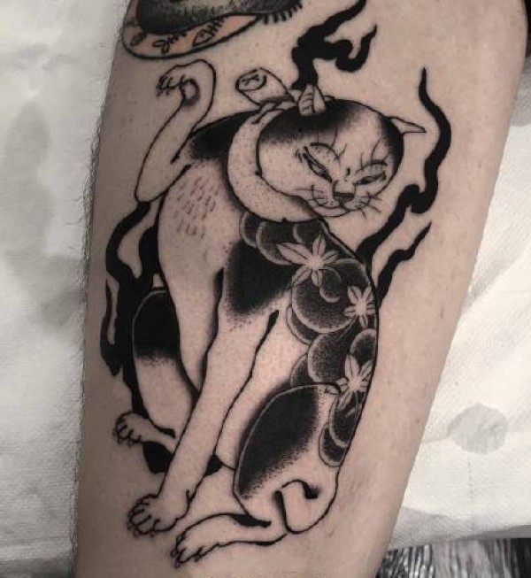 花腿纹身--一组大黑腿纹身图案作品欣赏