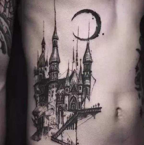 教堂纹身图案 极具欧美建筑色彩的教堂纹身图案