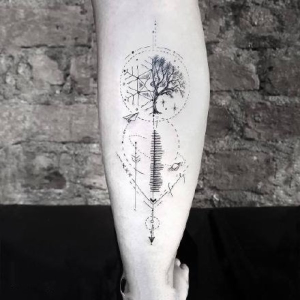 25款男性黑色手臂线条纹身点刺技巧半甲纹身图案