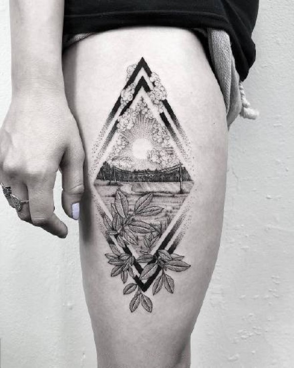 看起来很漂亮的侧腰部纹黑色点刺纹身图案