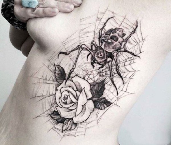 融合了蜘蛛网元素的一组个性纹身图案作品