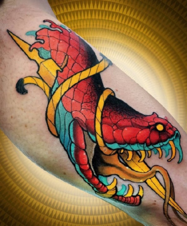 混合了Old School与NewSchool的彩色纹身图案作品