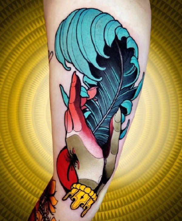 混合了Old School与NewSchool的彩色纹身图案作品