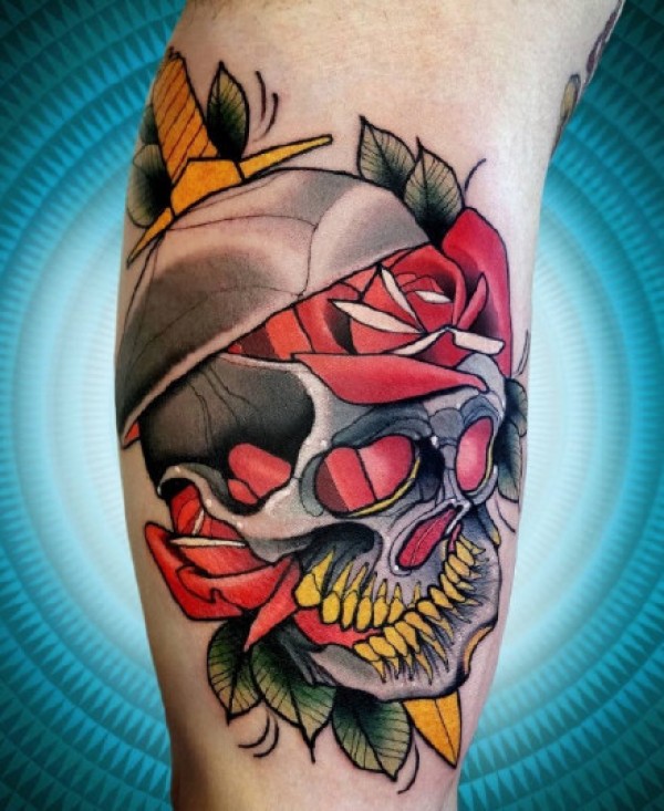 混合了Old School与NewSchool的彩色纹身图案作品