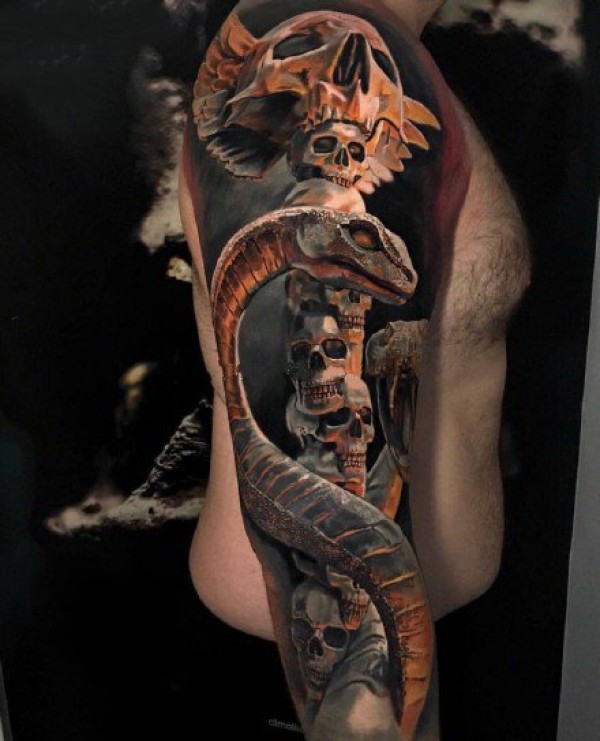 欧美花臂纹身_22张霸气黑灰欧美大黑花臂纹身图案作品图片