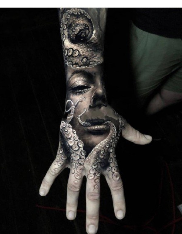 欧美花臂纹身_22张霸气黑灰欧美大黑花臂纹身图案作品图片