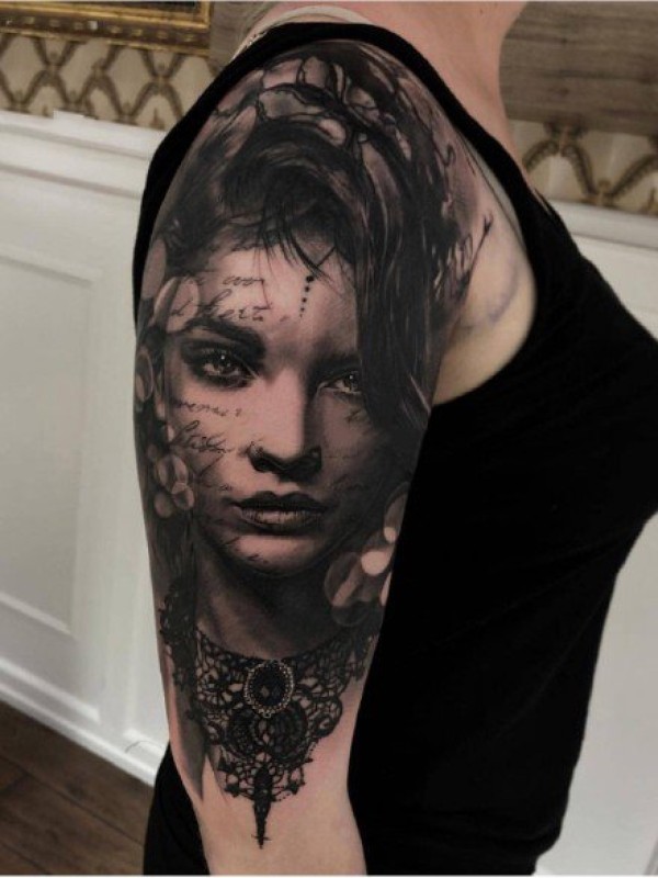 欧美花臂纹身_22张霸气黑灰欧美大黑花臂纹身图案作品图片