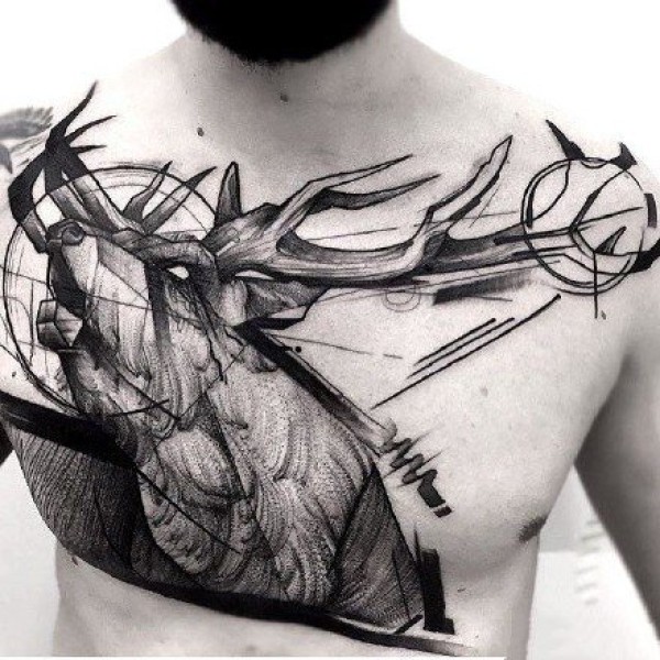 花胸纹身--一组男性霸气的大花胸纹身图案作品欣赏
