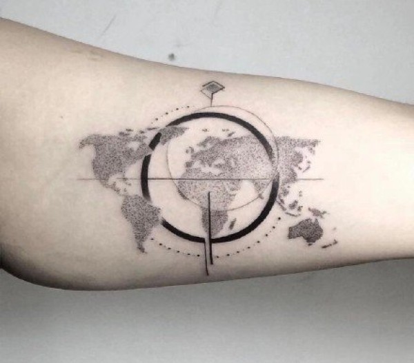 大臂纹身图 女生大臂上地图和指南针纹身图片