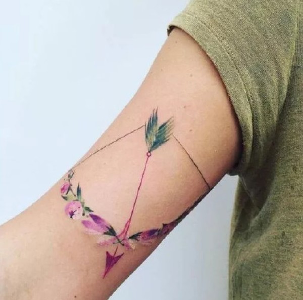 小清新的一组小彩色弓箭纹身图案作品