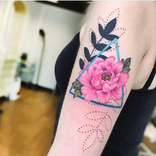 小臂上很好看的一组彩色花朵纹身图案9张