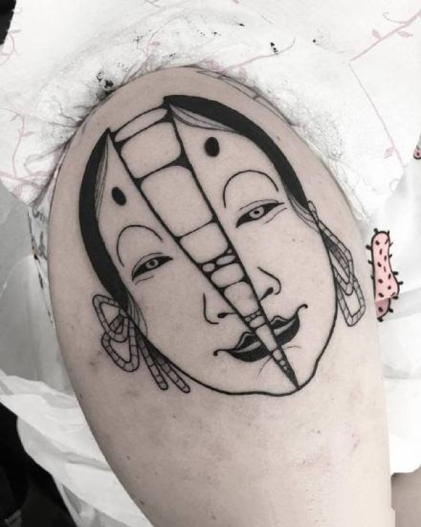 能面万媚纹身手稿_52张日式能剧面具纹身手稿图案素材欣赏
