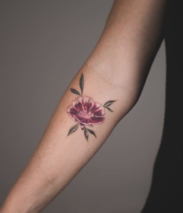 纹在手臂胳膊上的黑灰素花花卉纹身图案欣赏