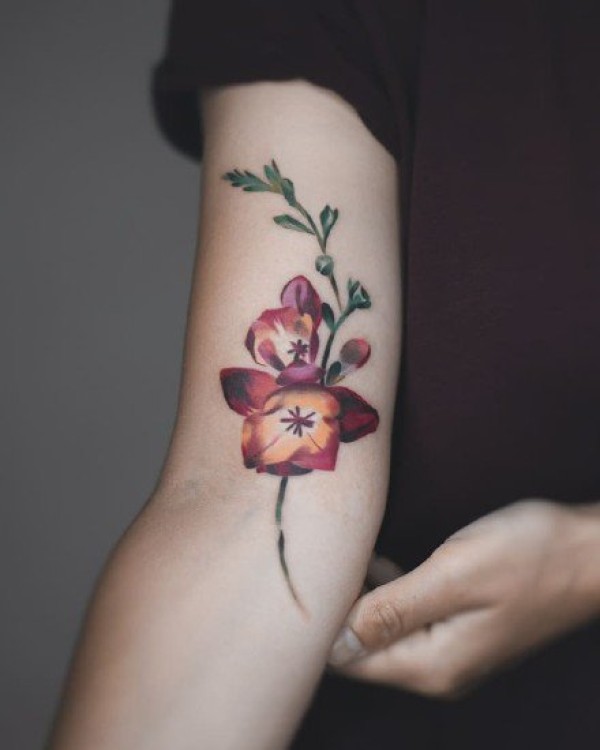 纹在手臂胳膊上的黑灰素花花卉纹身图案欣赏