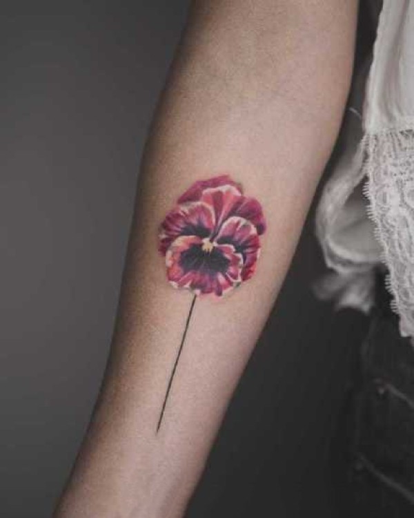 纹在手臂胳膊上的黑灰素花花卉纹身图案欣赏