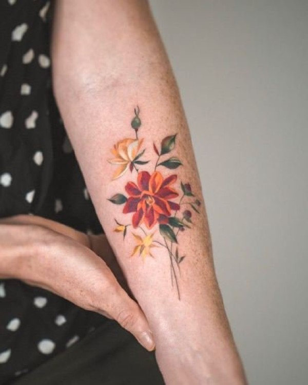 纹在手臂胳膊上的黑灰素花花卉纹身图案欣赏
