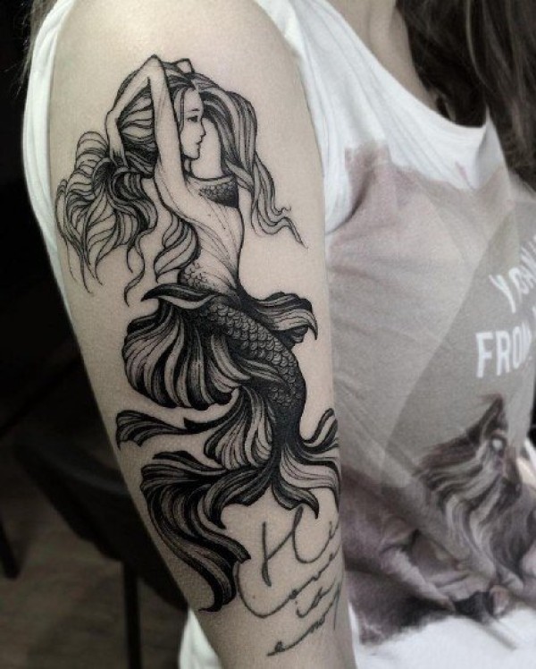 纹身美人鱼 魅力动人的美人鱼纹身图案