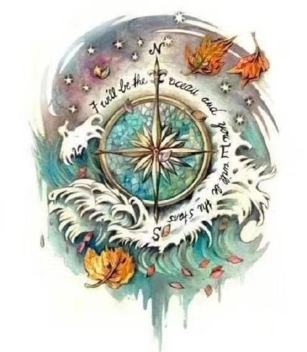 纹身指南针 多款水彩泼墨的指南针纹身图案