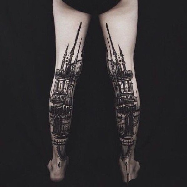 哥特式建筑--一组黑色的哥特城堡建筑纹身图案作品
