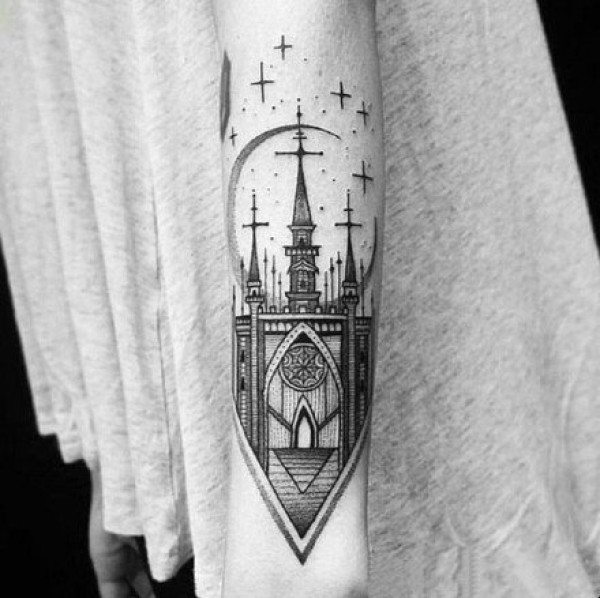 欧美城堡纹身 男生手臂上欧美城堡纹身图片