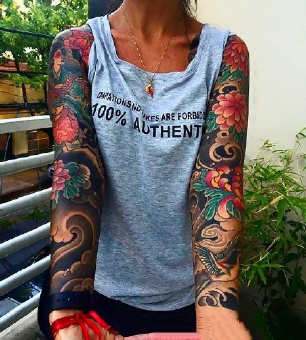 欧美花臂纹身_22张霸气黑灰欧美大黑花臂纹身图案作品图片