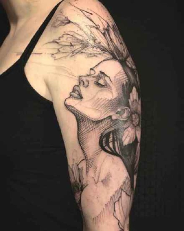 人像素描纹身--黑色调的一组人物素描纹身图案9张