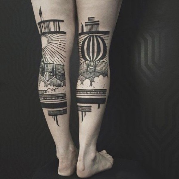 花腿纹身--一组大黑腿纹身图案作品欣赏