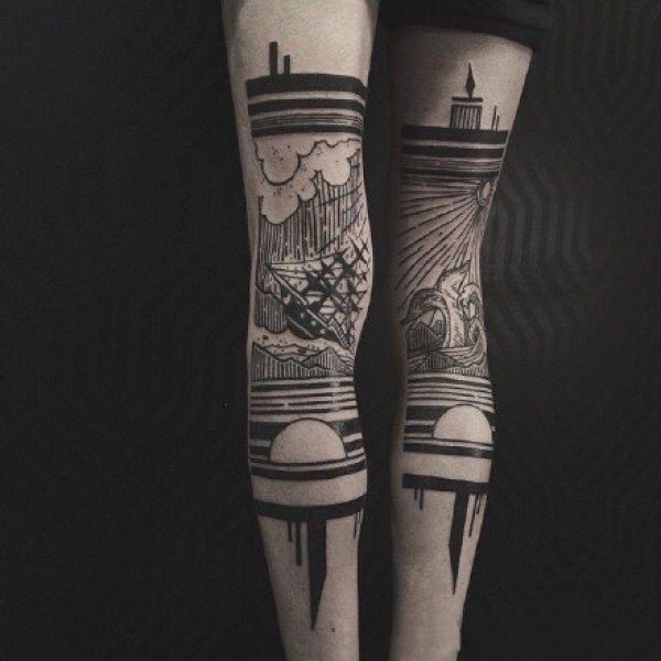 花腿纹身--一组大黑腿纹身图案作品欣赏