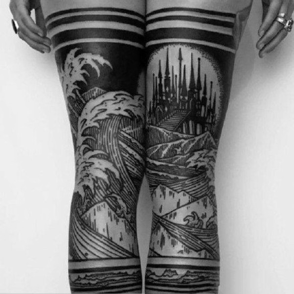 花腿纹身--一组大黑腿纹身图案作品欣赏
