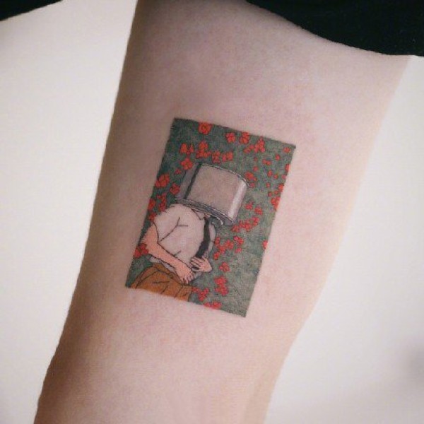 手臂插画纹身_9张黑灰手臂上的插画纹身图案作品图片