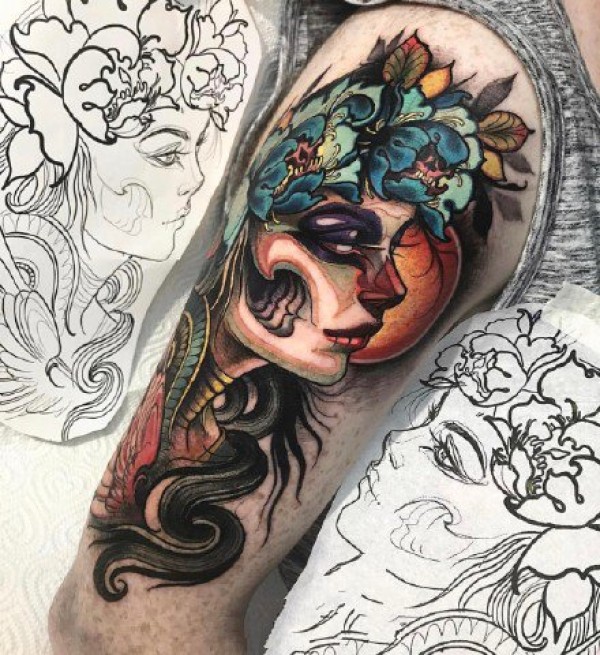 能面万媚纹身手稿_52张日式能剧面具纹身手稿图案素材欣赏