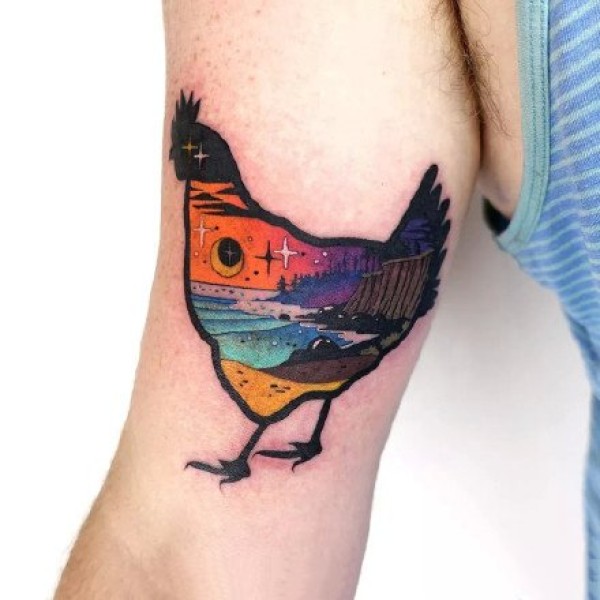 公鸡纹身图案现代纹身风格_动物纹身图案大全_纹身图吧