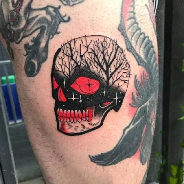 创意的动物轮廓和幻彩色星空风景等元素的纹身图案