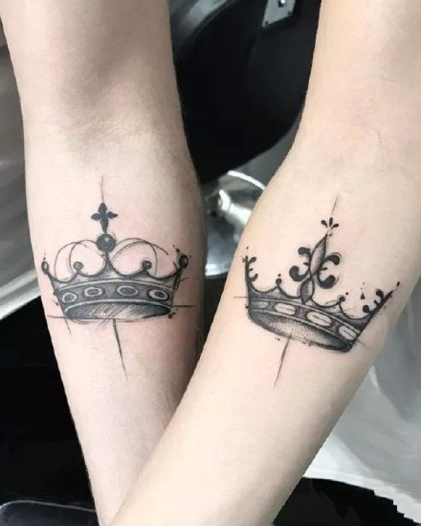 情人同款K&Q的国王皇后的皇冠纹身图案欣赏