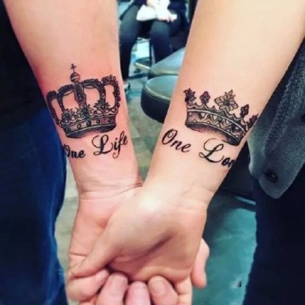 适合情侣的一组成对的皇冠纹身作品