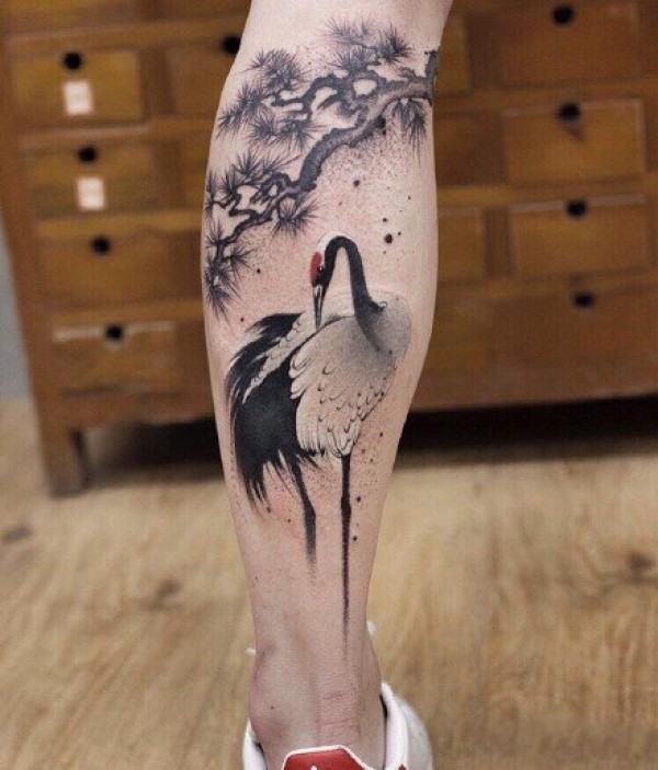 仙鹤纹身 9款传统中国风格的仙鹤纹身图片