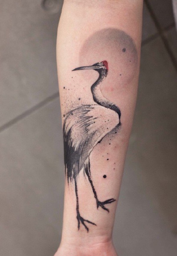 仙鹤纹身--中国风水墨元素的一组仙鹤纹身图案作品