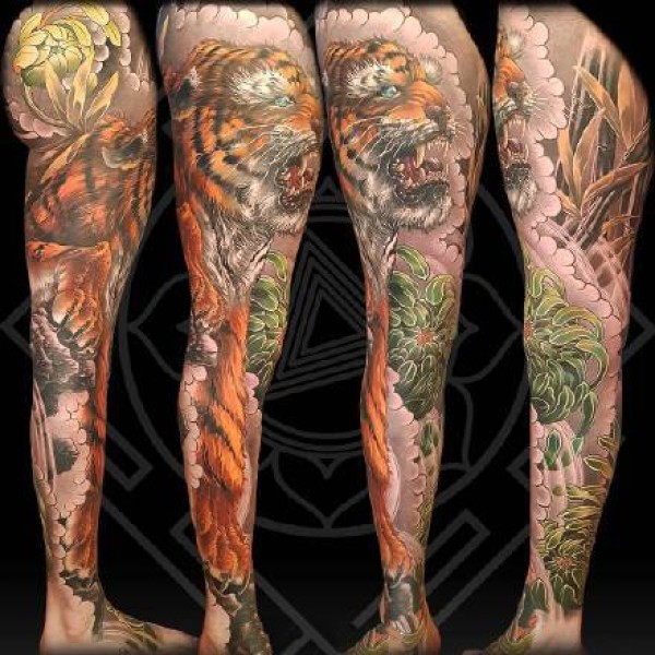 传统花腿纹身--18张传统风格的大花腿纹身图案作品