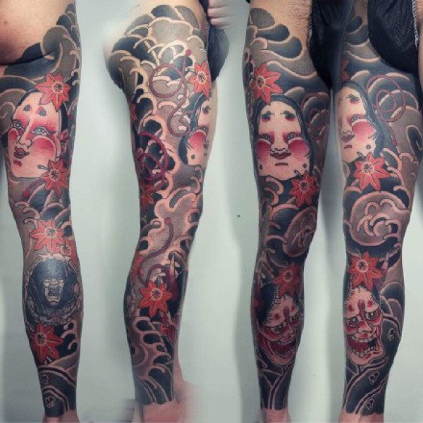 传统花腿纹身--18张传统风格的大花腿纹身图案作品