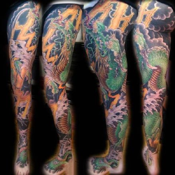 传统风格的霸气大花腿纹身作品欣赏