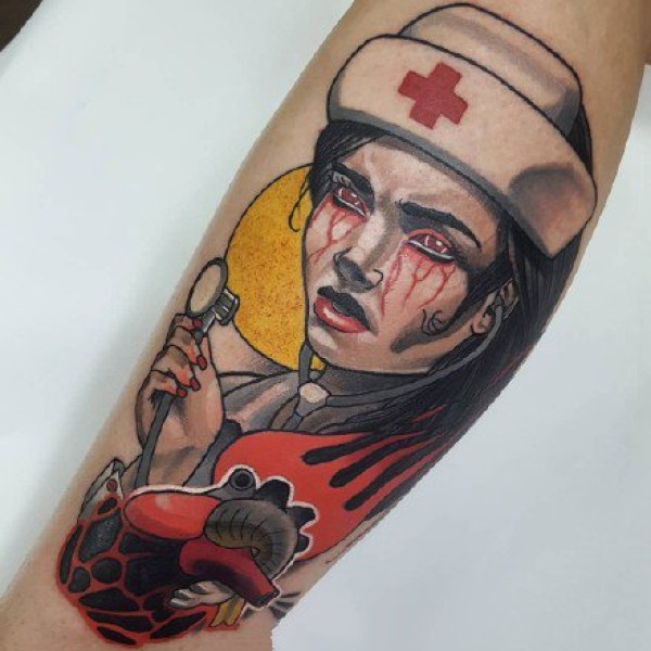 school风格的彩色欧美女郎纹身作品图片