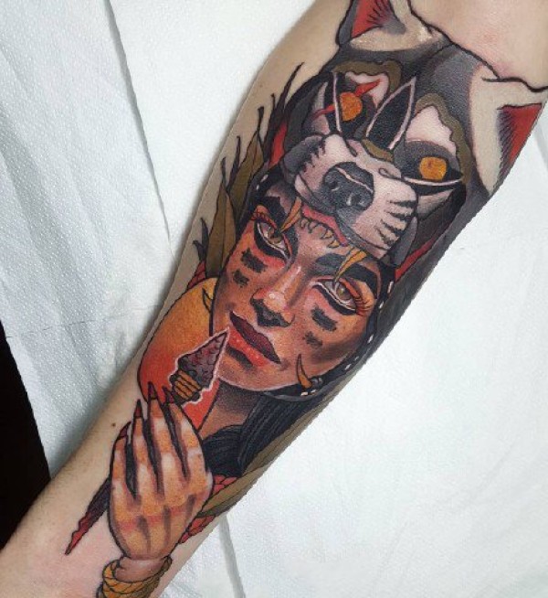 school风格的彩色欧美女郎纹身作品图片