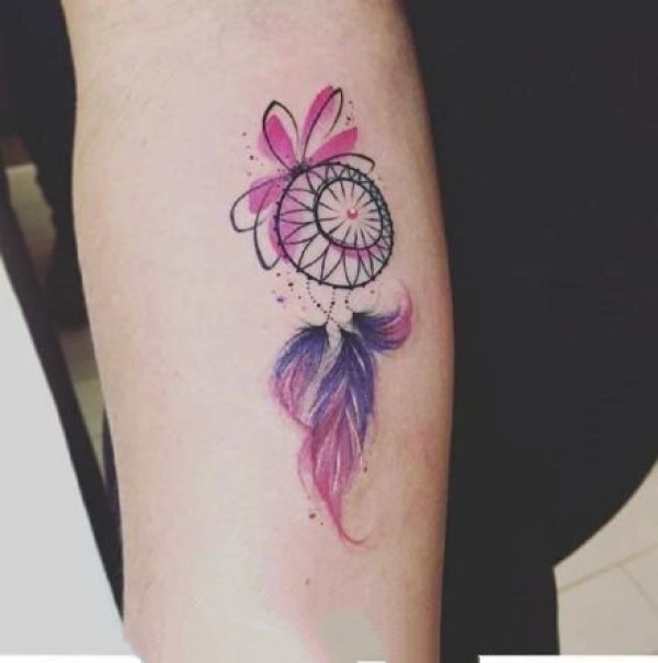 适合女孩子的小清新捕梦网彩色纹身图案