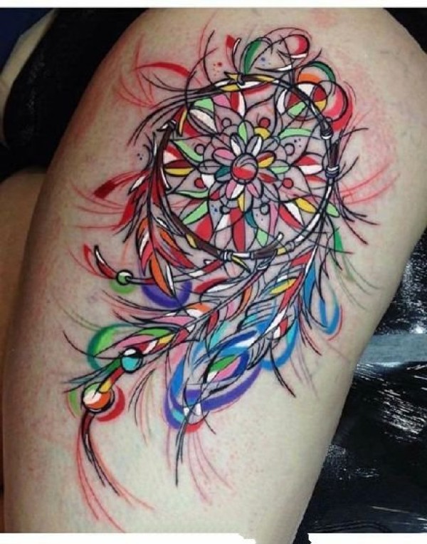 适合女孩子的小清新捕梦网彩色纹身图案