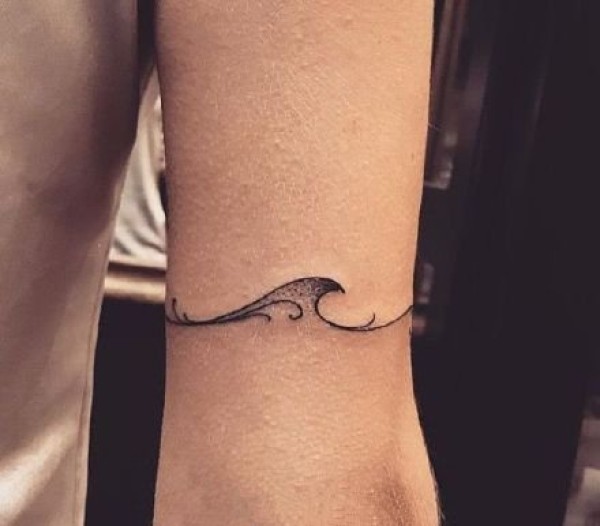 几何点刺小清新个性对称的海浪纹身图案手稿