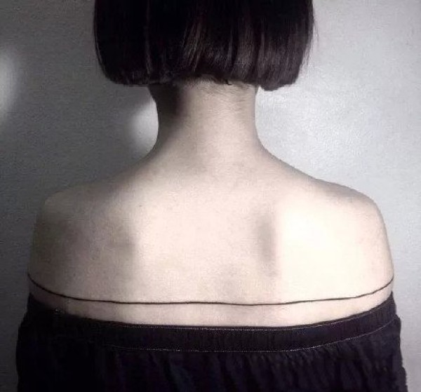 女生后腰纹身黑白灰风格抽象线条纹身图案