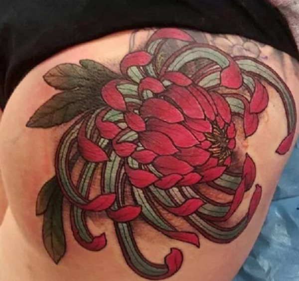 菊花纹身--9张漂亮的传统菊花纹身作品图案