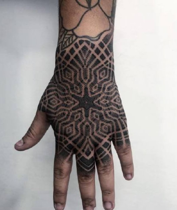 死黑手背纹身--从手臂到满手背的深黑色纹身图案